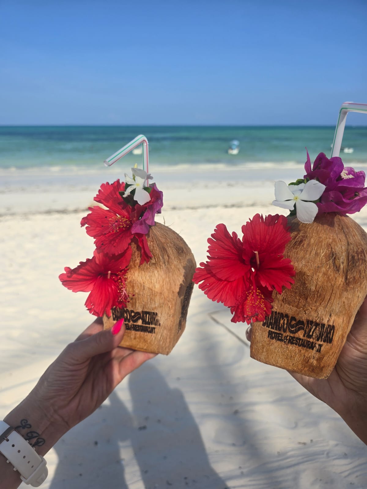 Two girls enjoy a serene boat ride near Mnemba Island, surrounded by turquoise waters and vibrant marine life—pure Zanzibar paradise.